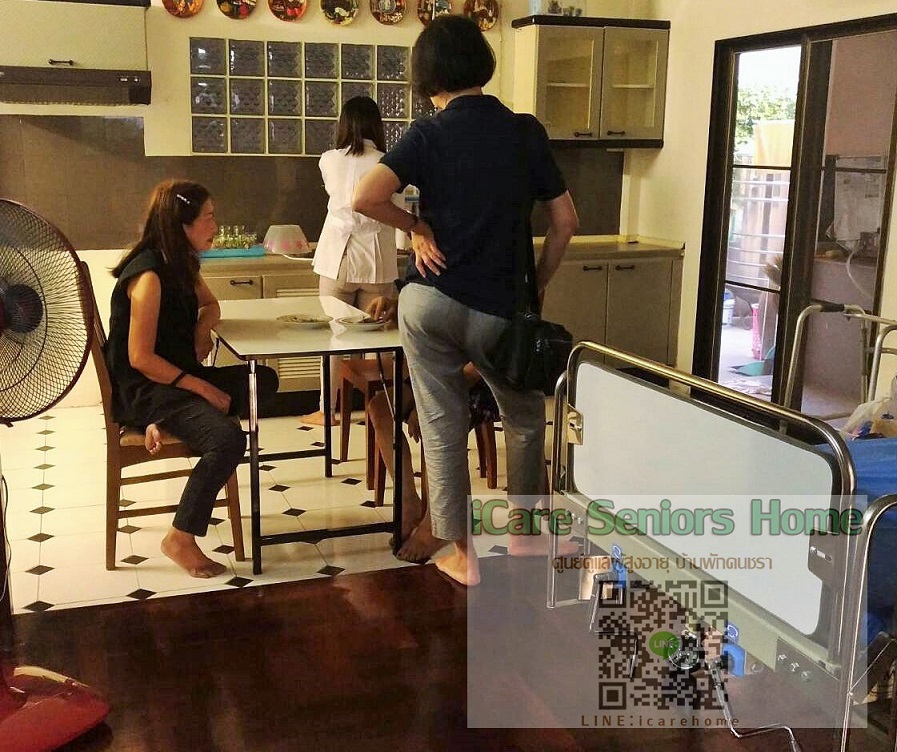 ศูนย์ดูแลผู้สูงอายุ บ้านพักคนชรา iCare Seniors Home ได้รับยาจากทางคุณอ้วนซึ่งเป็นน้องสาวของคุณป้าฟาน คุณอ้วนได้เจอ ผู้สูงอายุบ้านพักคนชรา iCare Seniors Home จากเว็บไซต์ ศูนย์ดูแลผู้สูงอายุ pantip โดยคุณอ้วนได้โทรศัพท์และขอเข้ามาดูสถาณที่จริง หลังจากได้มาดูบ้านกับทางญาติอีก 3 - 4 คน ทุกคนชอบ ศูนย์ดูแลผู้สูงอายุ ของเรามาก ทางญาติๆจึงตัดสินใจจองห้องรวมโดยทันที และได้วางมัดจำเงินไว้ 1,000 บาท โดย ราคา ศูนย์ดูแลผู้สูงอายุ ห้องแบบรวม ห้องรวมนี้จะมีทั้งหมด 5 เตียง โดยคุณป้าฟานเป็นคนแรกของห้องรวมนี้ มาตอนแรกๆคุณป้าบอกว่าศูนย์ดูแลผู้สูงอายุ ของเราร้อน ทาง iCare Seniors Home จึงได้เปิดแอร์ให้ตอนกลางคืน โดยหลังจากเปิดเครื่องปรับอากาศได้ 2 ชั่วโมง ทางคุณป้าฟานจึงบอกให้พนักงานปิดแอร์แล้วเปิดพัดลมแทนเนื่องจากรู้สึกหนาว คุณป้าฟานบอกดีว่าตอนอยู่ที่โรงพยาบาล ห้องที่พักอยู่นั้นมีการเปิดแอร์ตลอดเวลา ทำให้คุณป้าไม่ชินกับอากาศปกติ แต่พอได้เปิดพัดลมแล้วคุณป้ากลับชอบมากกว่าเครื่องปรับอากาศเสียอีก